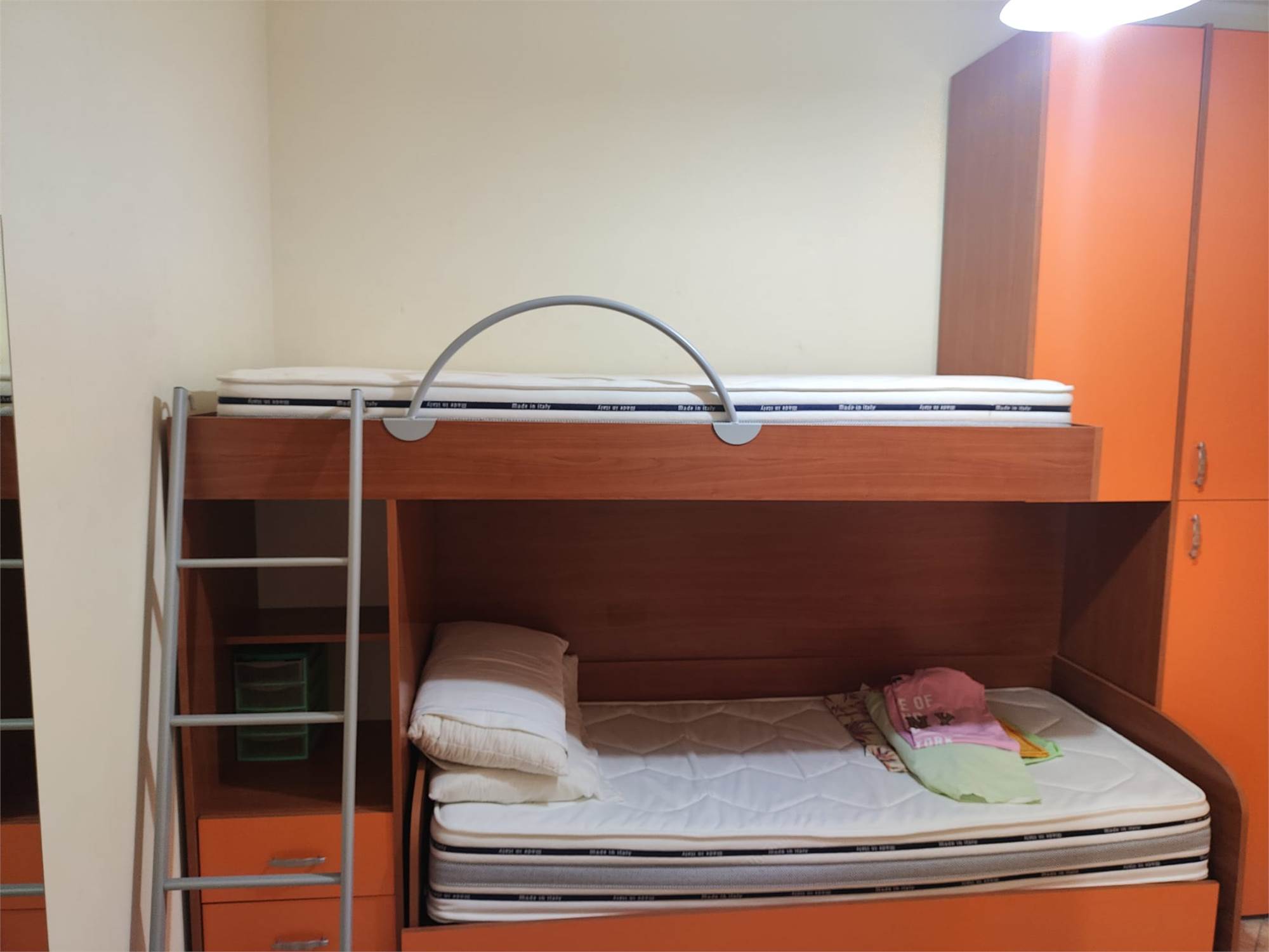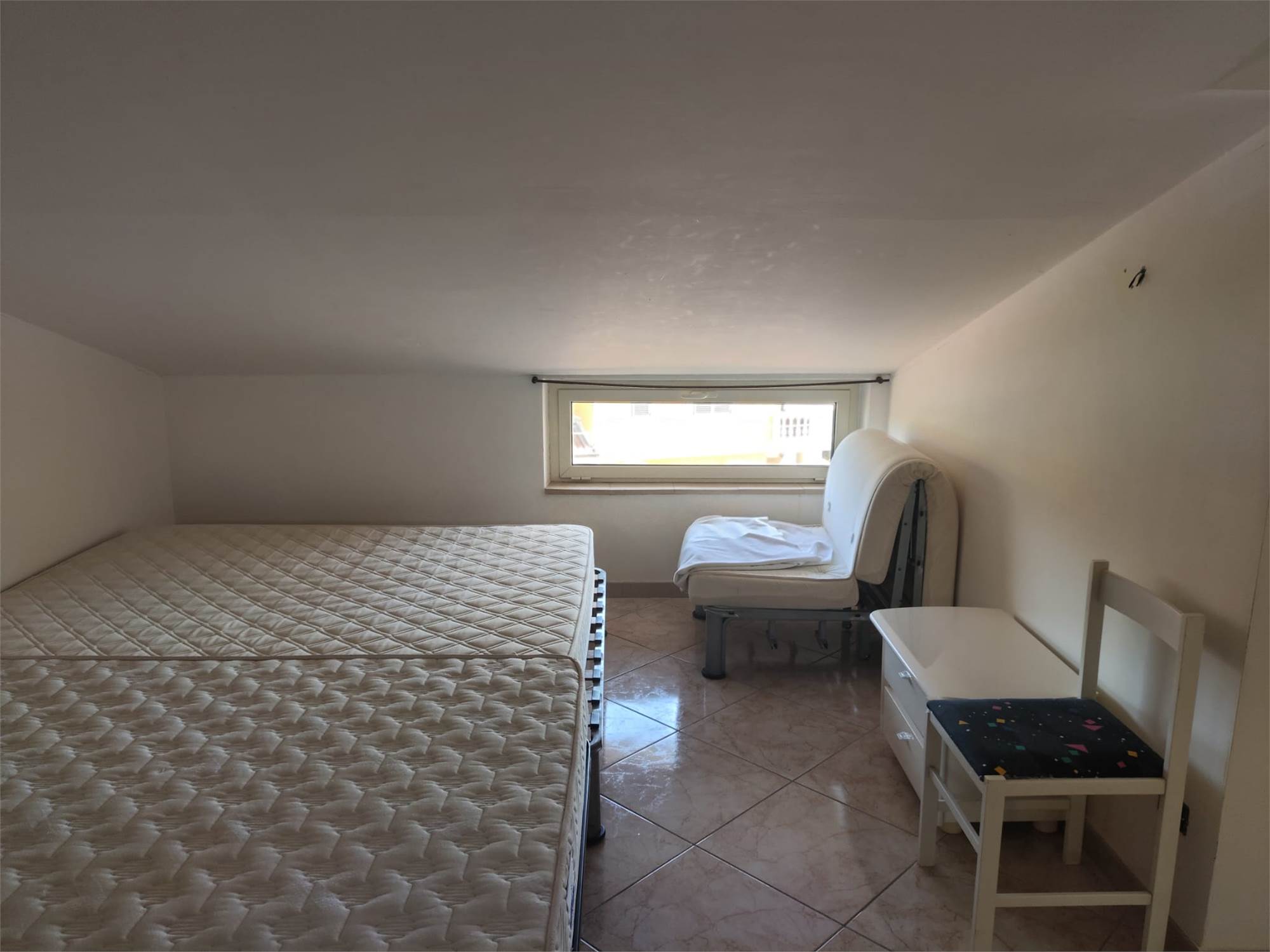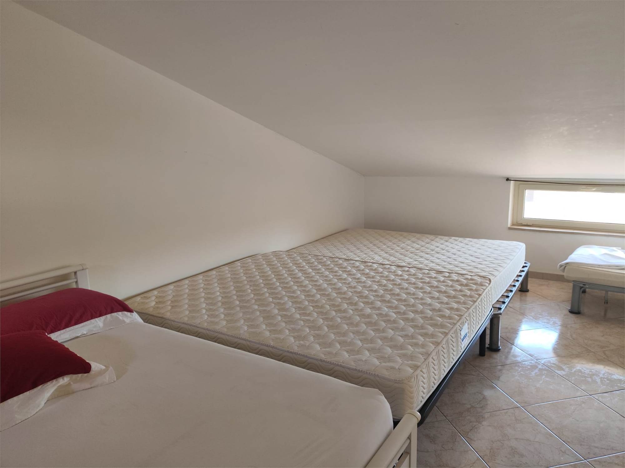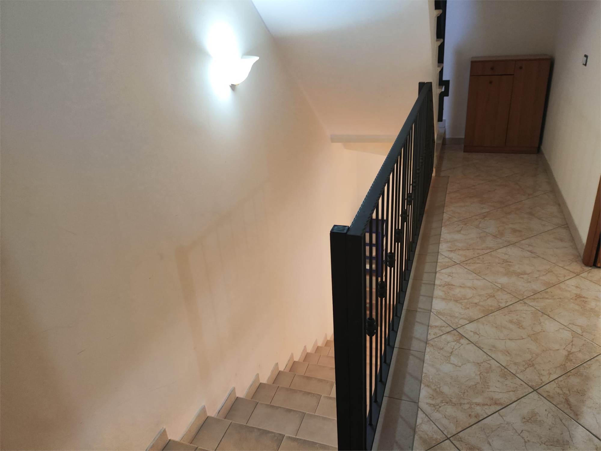 Tramite scala interna si accede ai piani superiori, al primo due camere da letto e bagno con doccia, al secondo piano ampio locale sottotetto e ulteriore bagno di servizio.