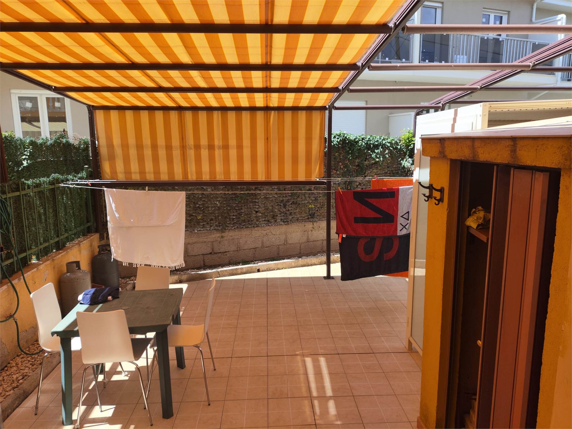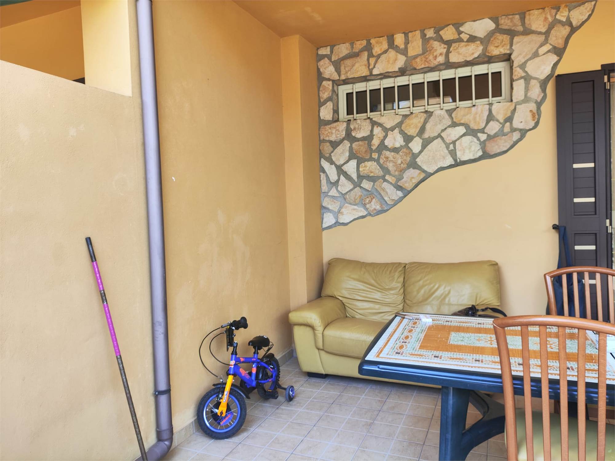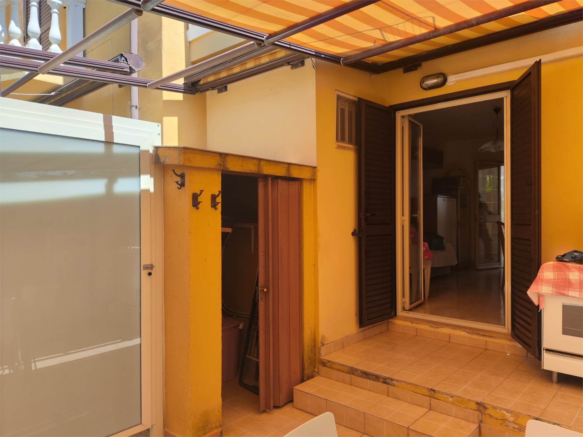 Al piano terra ingresso indipendente con corte esclusiva utilizzazzabile come posto auto scoperto, ingresso in soggiorno con cucina a vista e primo bagno di servizio, sul retro ulteriore veranda attrezzata con doccia esterna.